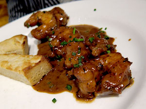 What mattered, though, was that those old favorites arrived, one by one, and for the most part they were pretty darn good. The barbecued shrimp were always an old favorite (originally credited to his sous chef, André Begnaud, in Lagasse's first cookbook, though listed simply as "Emeril's Barbecued Shrimp" here), sautéed hot until a little crisped and blackened around the edges, and then doused in a seductively intense sauce of creole seasoning, house-made Worcestershire sauce, and an obscene amount of butter and cream. It's a bit of a departure from typical New Orleans barbecued shrimp, the cream being the most notable refinement, but it's a doozy of a dish and it's still as lusciously dark as I remember. Chicken, shrimp and Andouille gumbo was also formidable, thick and spicy with just enough okra to keep the purists from getting pedantic about what does and does not constitute gumbo. I've discovered in the intervening years that I tend to like mine a little darker and dirtier, but this is still a fine specimen.