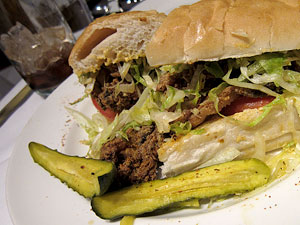I'd never tried it before, but I spied the fried oyster po' boy on the menu when perusing the website a couple of months prior, and had been dreaming of it ever since. I'm two and a half years removed from my last trip down to New Orleans, just as far removed from the last good fried seafood po' boy I've had, and man, was I jonesing for this. If nothing else, it's gargantuan, a huge loaf of bread piled high with no fewer than a dozen (and probably more) formidably-sized oysters, the requisite veg, creole mayonnaise and a side of bread and butter pickle spears. The problem was the oysters. Plump, juicy and generous, I can't complain about their size or abundance. But there was barely any crisp to them at all, and the contrast between fried coating and slippery interior is what makes this sandwich for me. There were some other minor shortcomings to nitpick, but none that couldn't have been easily overlooked had the oysters been on. As it was, I just found myself dreaming about Domilise's. Two and a half years and counting. *sigh*