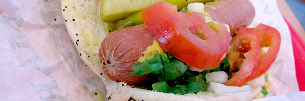 The more typical offerings are also well-represented. The cheeseburger's nothing fancy, but it's good, a freshly-griddled patty with two slices of cheese, vegetables and condiments, on a toasted sesame bun. There's nothing special about it beyond the fact that it's just like the burgers you might get from any neighborhood stand in Chicago, which just makes it right somehow, even if it probably won't be a standout to anybody who didn't grow up with it. The hot dogs are more obviously good, a skinless Vienna beef five-to-a-pounder dressed with the usual suspects. I much prefer the sublime snap of a natural casing dog, but the early returns apparently indicate that most of Joel's customers thus far prefer the bigger dog (Vienna's natural casing dogs are only available in a smaller size). But I understand the natural casing dogs will be making an appearance later this week on a trial basis. Here's hoping they stick around.