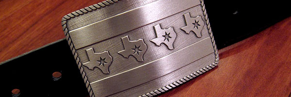 Until a week and a half ago, my personal experience with Texas was limited to a gas station in the middle of nowhere, and the Hooters in Amarillo (I loathe breastaurants, but not as much as I love the Chicago Bears). And so, last weekend, it was with a great deal of excitement that my ladylove and I left the chilluns with Grandma, piled into the car and set off for the wedding of a dear, dear friend in Marfa, Texas, perhaps the most remote destination I've ever visited in the contiguous 48. Texas and Chicago were gettin' hitched, as one of my high school friends found herself a feller in the Lone Star State and proceeded to plan a wedding invoking the spirit of both of their homes, blessed by patron saints Elvis and Johnny Cash, and fully branded with custom-made accoutrements like the stunning piece of pants-securing hardware you see pictured above. In short, it was a helluva time.