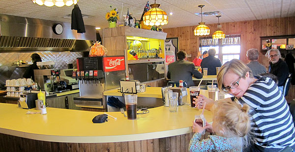 A few days later, on the way home, I decided that we obviously hadn't consumed enough cholesterol for the trip, so we stopped again in Milwaukee, this time at Solly's for butter burgers. There's nothing about Solly's that looks like a restaurant from the outside, but tucked into the ground floor of a building that kind of vaguely resembles Norman Bates' house (but only because it was Halloween weekend) is a small short order diner that serves breakfast and burgers.