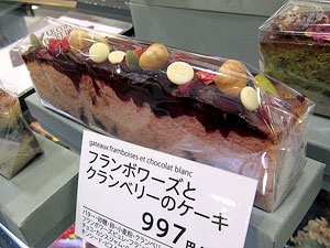 Jamon Iberico de Bellota, anyone? A mere $4200 per leg. And you have your choice of eight. Strawberries, stunningly perfect, unblemished, each better than the most perfect strawberry you've ever tasted, packaged in a wooden box and sold for $50/dozen. Japan's famed beef, currently illegal in the United States (a retaliatory embargo after Japan cut of U.S. beef due to BSE concerns), marbled such that it seems more fat than meat, this particular specimen a good bit off the pace at $130/lb (I'd later find some at $500/lb). Of course, these are the shocking outliers. But what's clear is that there's an appreciation for food quality in Japan that you just don't see in the United States. Most of what you'll find in basements of the department stores is affordable, if somewhat expensive. But even run of the mill produce is stunning in appearance and freshness, meats trimmed with the utmost care, confections stunningly presented, as with the cake above, each slice carefully packaged, each flavor artfully topped with a different assortment of nuts, berries and sugared herbs. And these are but a few examples out of thousands and thousands. I could fill two dozen posts with similar finds. At first it's awe-inspiring to see so many of the most incredible foods you've ever seen all collected in one space. Then it's frustrating, as you start to ask yourself why we can't have just a tenth of this back home. Then it's depressing, when you accept that on the whole, we just don't have the cultural appreciation for quality necessary to support places like these. When it comes to food in the United States, on the project triangle of cheap, fast and good, it's no mystery which one is usually sacrificed. I try not to dwell on it lest every blog post devolve into an angry rant.