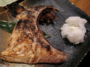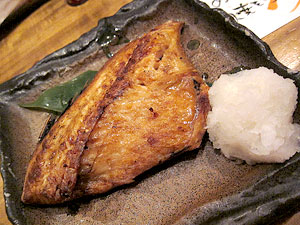 I have no idea what tsubodai is. Some kind of whitefish? The varieties of fish available in Japan outnumber those readily available at home by two orders of magnitude. The set of fish that I could only describe as "some type of [blank]" might cover dozens of uniquely named varieties, ages and cuts of fish to an educated Japanese palate. But in any case, the tsubodai -- whatever it is -- seemed to be a special for the evening, and special was the right word. This one bore the full brunt of the grill, the skin side turning charred, blackened and flaky while the flesh side took on a robust golden color. Yet the flesh remained flaky and moist inside, the perfect marriage of fish and fire, with nothing more than some shredded daikon and soy to accompany. I ask myself why we can't have such brilliant, simple fish dishes at home, and then I remember that it's because the fish has to be this fresh and amazing to begin with. We aren't blessed with Tsukiji a short drive away, so it requires an appreciation for the best and a willingness to pay for it, and it's frustrating that those who understand this are so few and far between. But I digress.
