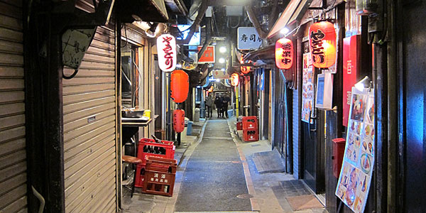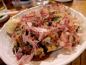 Frustrated by a string of bad luck that was rapidly turning my last late night in Tokyo into a total bust, I realized I was just a couple of blocks away from Golden Gai, a section of Shinjuku known for its quirky vibe and late night sensibilities. I resolved to give it one last shot before throwing in the towel. Golden Gai is quirky, all right, a patch of land about the size of a football field packed with tiny, ramshackle two-story buildings and narrow alleys. Music clubs and dive bars were abundant, some shuttered for the evening, others filled with late night patrons having a beer and listening to music, both recorded and live. I weaved my way through the deserted aisles, peeking into a club or two, not seeing anything in the way of eats. And when I was nearing the point of surrender, I caught a whiff of something and my head whipped around. When in doubt, follow your nose. And my nose led me to a tiny, tiny little eatery, eight or ten feet square on the ground floor of what amounted to little more than a hovel. But the fellow manning the open kitchen moved with economy and purpose, an obviously seasoned hand, and the smells coming from his griddle were intoxicating. A tiny counter seated five, and on the corner was one open seat. Clearly, it was waiting for me.