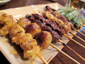 It was tiny and dark, and though I suppose some might call it dingy, it struck me more as full of character, like a good dive bar. Translated menus are always helpful, but some let off an especially touristy vibe, and this was one of them. I started to get a little worried, but foraged ahead anyway, ordering their basic yakitori assortment. It was only after 5-10 minutes of waiting that I noticed the tableful of businessmen -- still loudly laughing and joking -- wasn't actually eating any food. This was about the time I started to think I'd made a mistake. And when the food finally arrived, half an hour after I ordered, that notion was confirmed. Oh, it looks nice enough in the photo... skewers of chicken thigh, tsukune, liver, gizzard and more. But what it lacked was flavor, texture and sizzle. The meats were dull, underseasoned, and lent the impression that they'd been slowly warmed over the end of the evening's dying embers rather than a hot, smoky fire. Oh, there was some char. I don't think they were re-warmed or anything like that. But this was lackluster at best. Strike one for late night dining.