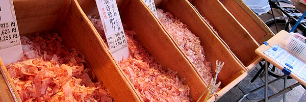 On previous visits, I've always spent my time in the market proper, wandering the narrow aisles, gawking in total amazement at what seems like an infinite variety of seafood, both fresh and live, that goes on for miles. But there's a surrounding neighborhood packed with vendors that sell all sorts of other foodstuffs, and on my last visit, I resolved that when I returned, I'd spend my time in the outer market for once. So that's what I do. I encounter vendors selling thirty different varieties of beans. Others have giant vats of miso, from which they'll unceremoniously scoop some into a plastic bag for you to take home. Produce vendors have stunning greens, perfect mushrooms and piles of fresh wasabi root that make me wish I were bold enough to challenge customs on the way back. One of the stands ends up being highly educational, displaying grades of shaved bonito lined up in order of quality. On one end, it's haphazardly shredded and dull grey in color. On the other, huge, light flakes are a vibrant, bright pink and let off an intense, lightly smoky fragrance. Every time the vendor shuffles some of his product around, the air becomes momentarily laden with the scent of fresh bonito flakes, and I end up lingering long enough to earn me some looks. So I move on, stopping at a produce vendor to buy a whole yuzu and tearing it open to slurp out a bit of the tart flesh. I hate that a week ago, I could barely remember what fresh yuzu tastes like, and I want to hold onto it for a moment, trying to sear the flavor into my brain for what will probably be a long drought ahead.