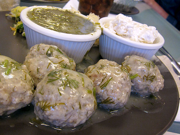 Meatballs of a less gargantuan size come in multiple varieties, the familiar Swedish version beefy and spongy and smothered in a creamy gravy. But the one that really caught me off guard -- and I mean that in the best way possible -- was the Danish version called Frikadeller. I'm not certain the Danes would identify these as such, since I understand they're generally flattened and pan-fried, but I'll leave the semantic debate to those who are well-versed in the finer points of Danish cuisine and simply express the important part, which is that these are freaking delicious. These pork meatballs would be a winner if served completely naked, impossibly light, tender, moist and... dare I say... even juicy. They're the antithesis of every bready, leaden lump of meat that's ever caused you despair. But if that weren't enough, they're doused with a delightful sauce, a light sweet and sour gravy heavy with dill. I got two meatballs. I wish I'd had two plates. I love these.