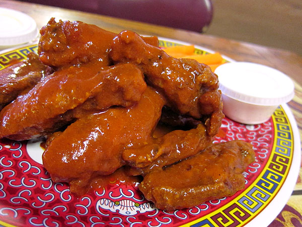 The exterior of Buffalo Brown's doesn't exactly inspire confidence, but while it's undeniably kind of divey, it's considerably more welcoming on the inside. The "things" refers mostly to run of the mill fried accompaniments and variations on burger toppings, with a few other sandwiches thrown in for good measure. But it's clearly about the wings, and the wings are totally worthwhile, if ridiculously oversauced (and kind of hilariously served on Chinese-themed melamine). But they're served at that perfect point with crispy edges, chewy exterior and juicy center, and a request for light sauce does the trick. Sadly (for me), it's a ranch-only establishment, and a cheap ranch at that. And those who dig celery will be disappointed. But if you're in the mood for crisp wings and a cheap beer, it's a worthy stop.