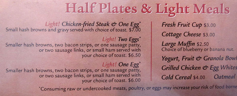Upon landing in Arcadia two and a half years ago, I'd intended to get to Ranch House Grille for a chicken fried steak. But it burned before I got a chance, it was only just recently that I was finally able to visit this reopened local landmark to satisfy that craving. Ranch House Grill is just a humble little corner breakfast and sandwich joint, slinging eggs and pancakes for breakfast, and burgers, sandwiches and other homey, comforting plates in the afternoon (though both breakfast and lunch, I believe, are available at all hours). Breakfast standards are simple, tasty and deftly prepared. When it comes to lunch, I had a pretty mean patty melt, though the Green Pork Chili Verde for which they're famed was, to my taste, a little on the thin and underdeveloped side. But there's no knocking their famous chicken fried steak, hot and juicy with a crisp, salty crust and slathered with thick, peppery country gravy. Though the "side" of chicken fried steak is pictured, I've since concluded that it just isn't at its peak if it isn't the full plate, served alongside some hash browns and a couple of eggs. (Over easy -- runny yolk and country gravy? Yes.) And for those who are watching their diet, fear not! The chicken fried steak also comes in a "light" version... served with one egg instead of two.