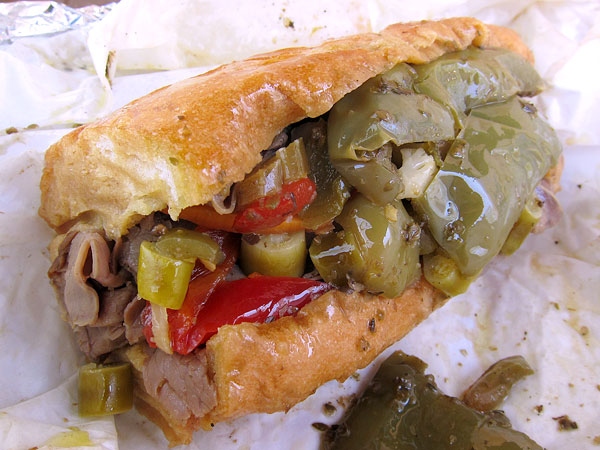 You could do a lot worse than Jimmy's if you're looking for a Chicago style dog, that's for sure, but I can't say it doesn't leave me wanting. The elements are all in place: a Vienna natural casing dog and the usual accoutrements on a steamed poppyseed bun. But the sausage doesn't quite have the right pop, and the whole package fails to capture that elusive steam table magic that the great spots nail. I'm at a loss to explain why some places catch that lightning in a bottle and others don't, but Jimmy's comes up just short. Still, a solid dog. I'm less enthused about the Italian Beef, which looks the part but is on the weaker end of the spectrum, with a bit of an odd, rubbery texture. I'm guessing it's the Vienna prepackaged stuff. And the juice wasn't particularly flavorful, with an off flavor I couldn't pin down. Most disappointing are the fries, cut fresh right in front of you and then terribly fried, resulting in a tough, greasy mess. It's rare that I feel a place would be better off sticking with frozen spuds, but this is one such exception.