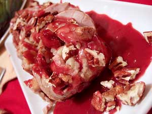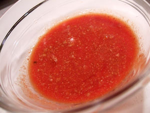 To prepare the sauce, start with the dried chanterelle mushrooms. Combine them in a small dish with half a cup of very, very hot water, and let them steep for about half an hour. Remove the mushrooms, squeezing any liquid into the dish, and discard them. If there appears to be any grit in the liquid, strain it through a fine strainer or paper towel. Put the chanterelle liquid in a small pan, bring it to a simmer and reduce it down to two tablespoons. Combine this reduction with the orange juice (freshly squeezed, please) and keep it hot.