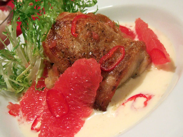 The third appetizer wasn't a troubled dish, per se, there just wasn't much to get excited about. The Mango Shrimp were sauced with a chutney that was built on onions and garlic and lightly spiced, but despite these additions it came across mostly as shrimp in a savory mango puree. The dish was inoffensive, but forgettable. The Mushroom Zaban, on the other hand, may have been my favorite dish of the evening. It wasn't much to look at, but the curried poached veal tongue with onions and portobello mushrooms had a luscious, earthy richness that I loved. I am, admittedly, partial to braised meats, but this was a particularly fine specimen. The curry wasn't so much a primary ingredient as it was a light accent -- a faint whisper -- to lend a touch of brightness to the succulent, silken, not-quite-beefy intensity of the tongue. This was the kind of meltingly tender meat that you want to linger on your palate. It's a dish to make a believer of tongue skeptics.