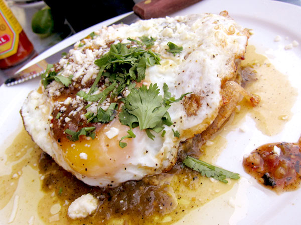 Being a hotel restaurant, Gallo Blanco runs the full slate from breakfast through dinner, and while I didn't sample much off the breakfast menu (available all day), I have a soft spot for chilaquiles. I went with the chicken option, but given how well the kitchen handles vegetables, it was probably the wrong call. But I mean this (in speculative fashion) only on a relative basis, as I totally dug these. Crisp tortilla chips, layered and cooked in green salsa with shredded pollo al carbon, Oaxaca cheese and smothered in two fried eggs, what I really enjoyed -- even beyond the vibrant flavors -- was the range of texture on the chips, going from toothsome but yielding in the center to still crisp on the edges. The dish's chaotic look betrayed some rather careful composition. And if the chilaquiles are really good on a weekday, I have a hunch they're otherworldly after a night of binge drinking. Almost makes me wish I were a binge drinker. (Almost.)