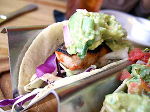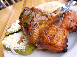 There are some more substantial plates as well, and after walking the smoky gauntlet out back, you'd better believe the pollo asado was going to be my choice. It's half a chicken, citrus-marinated, grilled to a deep golden color, charred on the edges, and served with fresh tortillas and a seasonable vegetable, grilled chayote with cotija and whole cloves of roasted garlic, in my case. There's just a tiny touch of a sweet sauce on the chicken that I couldn't quite place owing to its judicious use, and it's also served with the same aji amarillo aioli used for the chicharrón, which takes a dish already somewhat reminiscent of Peruvian pollo a la brasa and makes it even more so. But whatever influences are at play here, it's a simple dish, really well done. I found myself shredding up the breast to make impromptu tacos with some of the house salsa, dipping the wing and leg into the aji amarillo, and sucking the thigh meat off the bone as-is, because you really don't improve on that by dressing it up.