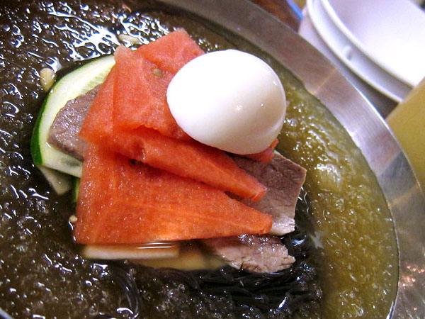 There's no restaurant in the Phoenix metro area that captured my heart more than Cafe Ga Hyang, for all kind of reasons. It's run by the sweetest of people, a cross-generational and cultural odd couple that turn out killer Korean food in a casual place that, owing to its late hours, became the preferred late night hangout for so many of my friends. But in the end, it's about the food, and the food is so, so good here, so bold, so simultaneously striking and comforting, as typifies Korean food to me. And the dish that struck me the most, and made the long, hot summer bearable, was Sun and Nick's naeng myun. This is a Korean dish I hadn't tried before, their version consisting of chilled noodles swimming in an ice cold beef broth -- sometimes (when I was lucky) with crushed ice still on top -- and topped with hard cooked egg, chilled sliced beef brisket, pine nuts, cucumbers, and some kind of fruit like nashi pear or watermelon. The final touch is some house-made mustard, squirted into the bowl and mixed around to give the otherwise clean and sweet dish a little bit of earthy heat. Now, when it's 115 degrees out, there is nothing in the city I want more, and if for no other reason, that's why the naeng myun sticks out in my head over a dozen other dishes that could just as easily have been in its place. This place was such a glorious find (thanks, Helen!), and in short order it's become one of my most beloved restaurants in the entire city.